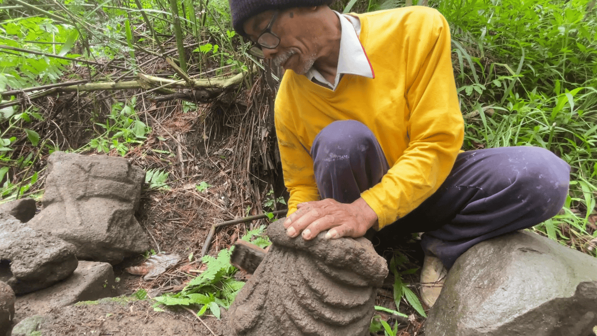 “Saat itu saya sedang bersih-bersih rumput, kok ada batu mirip arca yang di bawah (Dwarapala, Red), terus saya laporkan ke Pak Amin,” jelas Suryanto, Kamis, 13 November 2025.