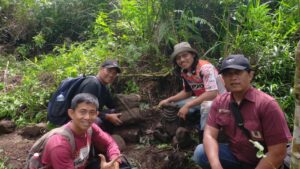 Tim Dinas Porabudpar Nganjuk, Kotasejuk, dan TACB Nganjuk melakukan pendataan temuan fragmen arca di lokasi Condrogeni (foto_Sukadi)