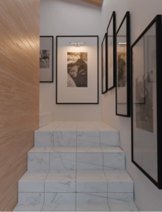 Area ini juga diperkuat dengan penambahan lampu sorot di bagian atas, memberikan sentuhan gallery-style yang premium. Cahaya hangat yang jatuh langsung pada peta menghadirkan atmosfer yang lebih berkelas, mempertegas kesan eksklusif dan profesional. Dengan pencahayaan yang terarah dan lembut, karya tampil lebih menonjol dan menjadi focal point yang menarik dalam ruangan.