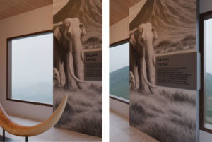 Seluruh komposisi menghadirkan kesan bahwa Museum Tritik bukan hanya ruang edukasi, tetapi juga pernyataan visual tentang kebanggaan terhadap potensi lokal—khususnya kekayaan kayu jati yang telah menjadi identitas Desa Tritik.