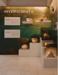 Selanjutnya, pengunjung memasuki zona invertebrate yang menampilkan fosil mahkluk tanpa tulang belakang sebelum tiba di gallery foto ekskavasi yang menunjukkan proses kerja lapangan. Susunan zona ini membantu pengunjung mengikuti alur cerita secara jelas – dari mengenal wilayahnya hingga melihat bukti kehidupan purba yang berhasil ditemukan.