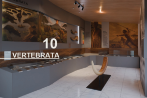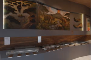 Perjalanan visual ini kemudian berakhir pada bagian biostratigrafi, tempat fosil-fosil yang ditemukan di lapisan bumi dijelaskan dalam konteks waktu dan perubahan lingkungan. Dengan pendekatan ini, dinding bukan hanya menjadi penampang estetis, tetapi sebuah alur naratif tiga bab yang membuat pengunjung memahami bagaimana kehidupan vertebrata berkembang dan terekam dalam batuan dari masa ke masa.